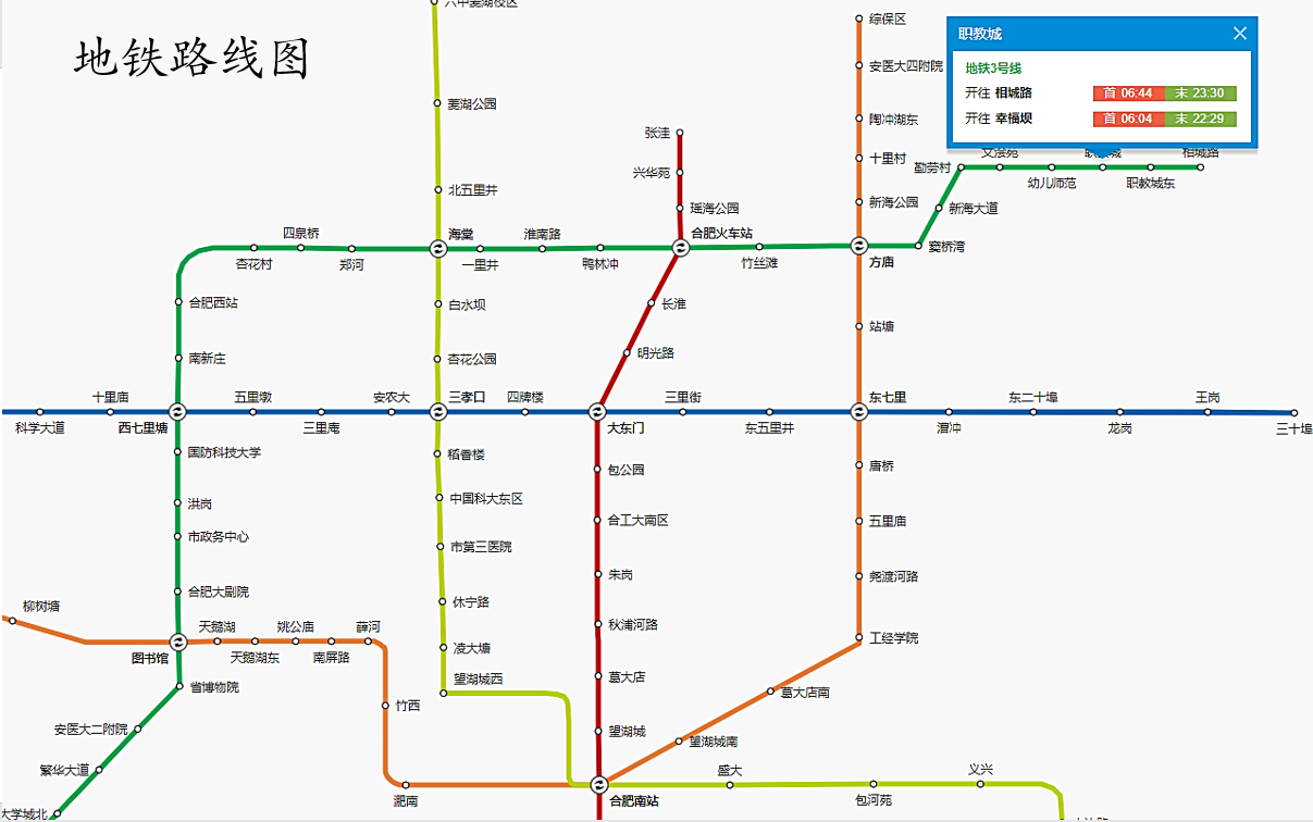 3.合肥火车站(轨道交通3号线)——职教城(4号口)步行至安徽职业技术学院南门
