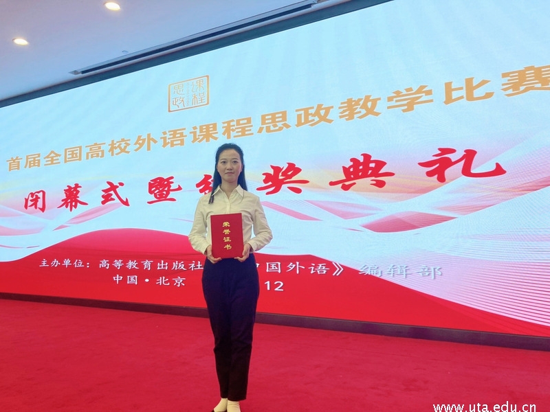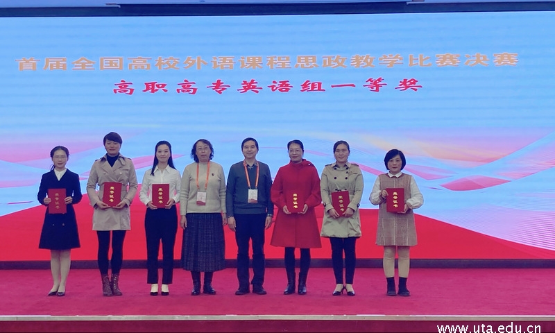 本网讯(基础教学部通讯员 陈芳芳)近日,外语教研室陈芳芳、王晴、许培红、赵荃、葛小竹组成的团队参加了由高等教育出版社与《中国外语》编辑部共同主办的首届全国高等学院外语课程思政教学比赛(高职高专组),此次大赛共吸引了来自全国共有700多所高校的外语教师、1500多件作品报名参加,经过第一阶段线上决赛和第二阶段现场决赛的激烈角逐,陈芳芳团队参赛作品从高职高专组220多件作品中脱颖而出,并作为安徽省唯一进入北京现场决赛的高职组代表队,在全国现场决赛中获得全国高职高专英语组一等奖。