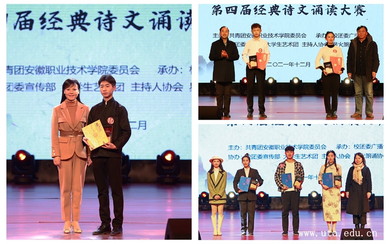 本网讯(院团委通讯员 石可)12月22日晚,学院第四届“新·朗读者”经典诗文诵读大赛决赛汇报演出在大学生活动中心举行,安徽艺术学院教授蔡正兰,校工会主席陈国玖、学生处副处长李瑞勇,安徽广播影视职业技术学院团委书记王莹、合肥市少儿艺术学院专业教师陈洁担任本次大赛评委,学院信息工程学院党总支副书记李洪、院团委副书记余搏立、贾亮亮以及部分二级学院(部)团总支书记和400多名同学观看了比赛。