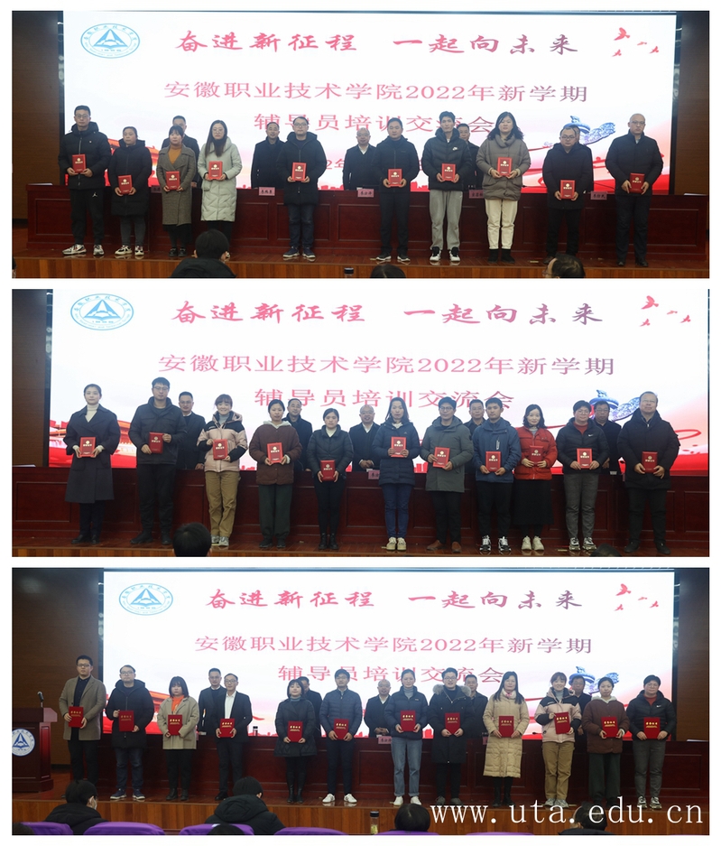 会上,保卫处负责人李仿民和院团委负责人余搏立分别宣读了《关于公布学院2021年“三全育人”综合改革项目优秀专职辅导员名单的通知》《关于公布学院2021年辅导员素质能力大赛获奖名单的通知》,主席台领导为受表彰的辅导员进行了颁奖。