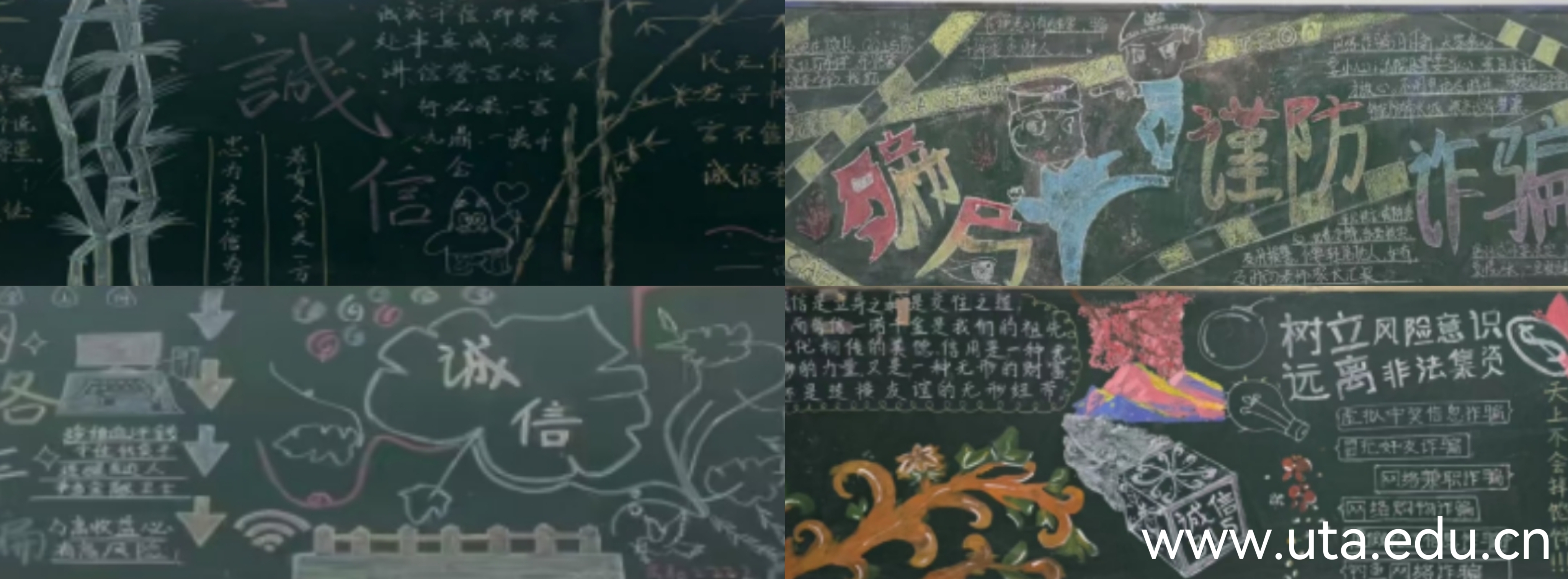 学院各班级精心组织、精心设计、广泛宣传,将诚信教育、防范电信诈骗、金融征信知识作为主题板报内容。开展“诚信感恩 励志成才”征文比赛,让学生们细心领悟诚信内涵,抒发所感、所悟、所想,通过文字述说对于诚信的理解以及成长过程中的励志故事、感恩故事,将诚信精神深深植根于思想中。