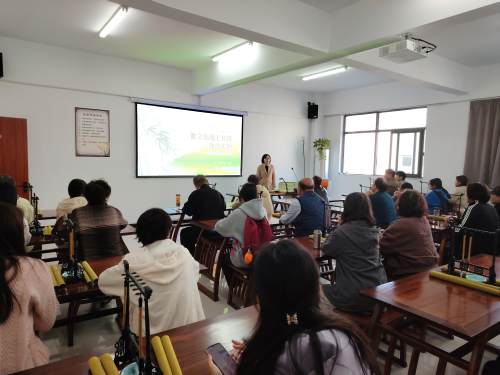 本次讲座的主讲人是现代商务学院的徐倩老师,她围绕“让徽文化在云端‘活’起来、‘火’起来”的目标,将专业知识与老年学员的学习需求相结合,带来了条理清晰、实用性强的内容分享。