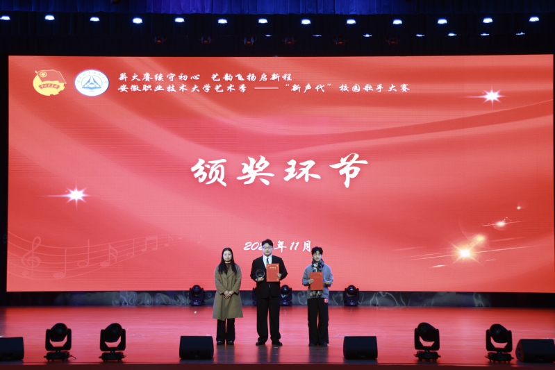 本网讯(团委)11月21日,学校2025年“艺术季”系列活动——“新声代”校园歌手大赛决赛在至立会堂成功举行。校领导李方泽、宣岩松、陈晓春出席活动。学校工会、人事处相关负责人,团总支书记代表和团委专职团干担任比赛评委。全校800余名师生共同观看了这场青春飞扬的音乐盛会。