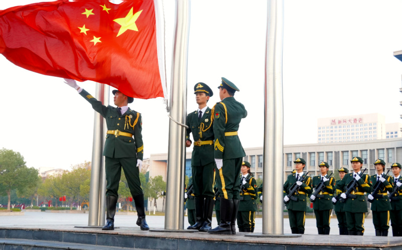 伴着冬日清晨的第一缕暖阳,在校国旗护卫队的守护下,在庄严的国歌声中,五星红旗在安职大校园的上空冉冉升起。