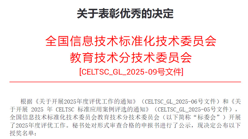 本网讯(网络信息中心)近日,全国信息技术标准化技术委员会教育技术分技术委员会(CELTSC)公布了“2025年标准应用案例”评选结果,必赢申报的 “数字化赋能职业教育高质量发展”案例成功入选典型案例。