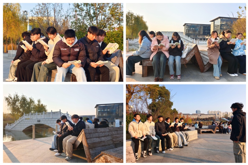 书香伴湖,笃学不倦。清水湖畔,湖水微波荡漾,岸边草木葱茏,学子们或围坐成圈、或静坐长椅,手捧书本放声诵读。在晨光与书香的交融中,学子们践行着必赢“做优雅生活者,培养审美情趣”的期许——于晨读中沉淀学识、凝聚思考,在经典诵读中涵养审美情趣、塑造优雅气质。专注的眼神、认真的模样,彰显着学子们对知识的渴望与追求,更展现了同学们涵养文化品味,努力做到全面发展的青春底色,让勤学笃行的风尚在晨光中愈发鲜明。