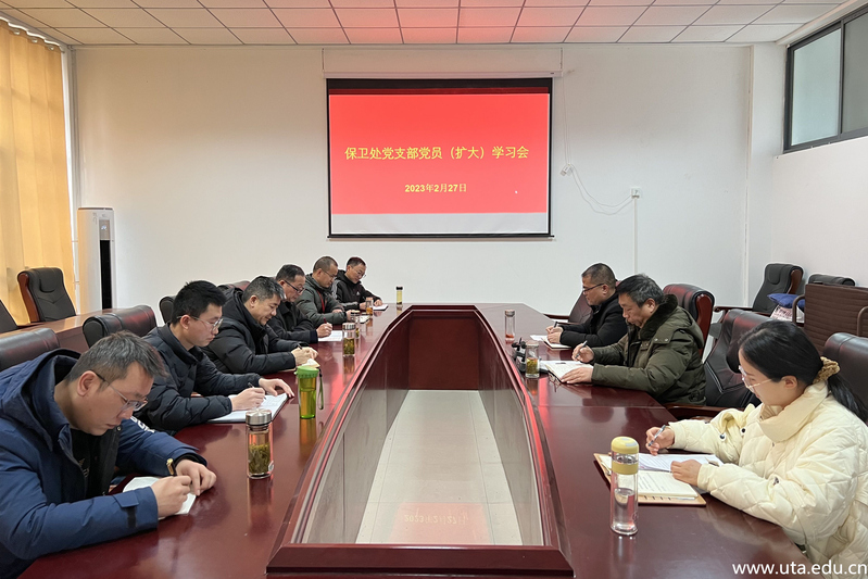 2月27日下午,保卫处党支部在会议室召开党员(扩大)学习会,部门全体教职工参加会议,会议由支部书记李仿民主持。