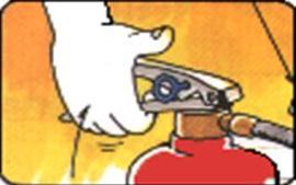 “喷”。往下按压阀,对准火焰喷射。