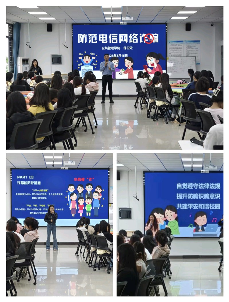 本次宣讲通过案例剖析、知识讲解、互动交流等形式,为全体参会学生上了一堂生动的安全教育课。公共管理学院今后将持续推进反诈宣传常态化,结合专业特色强化学生法治教育与风险意识培养,让防诈知识入脑入心。参会学生纷纷表示,通过本次宣讲深刻认识到诈骗的隐蔽性与危害性,今后将提高警惕,争做“防诈宣传员”,共同守护校园净土。(图文/李萌萌 张干)