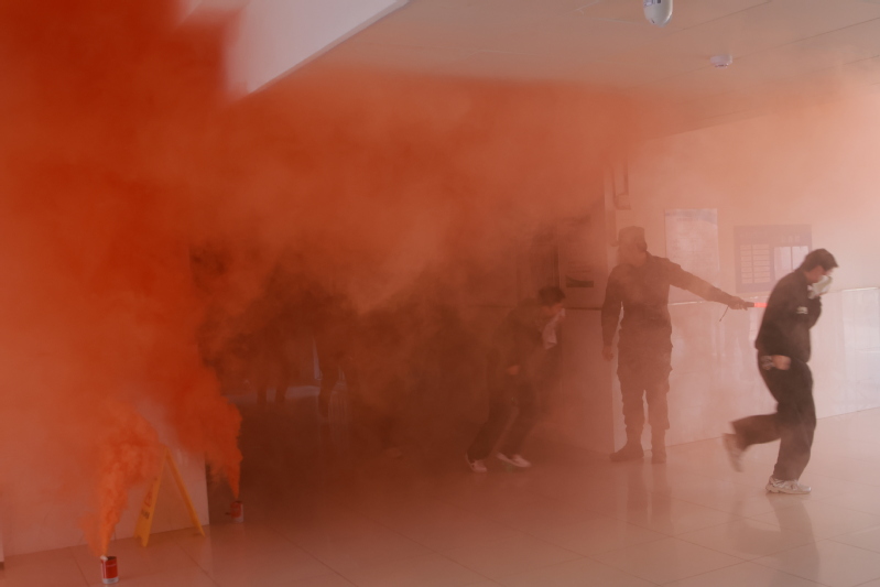 应急疏散演练模拟韶华南楼起火后,烟雾触发感烟探测器报警,总消控室值班人员立即上报并启动应急预案,各工作组同步开展人员疏散、火灾扑救、医疗救护等工作。在工作人员指引下,师生有序疏散,安全撤离到指定位置。最终,在多部门密切配合下,火势被彻底扑灭,演练圆满完成。