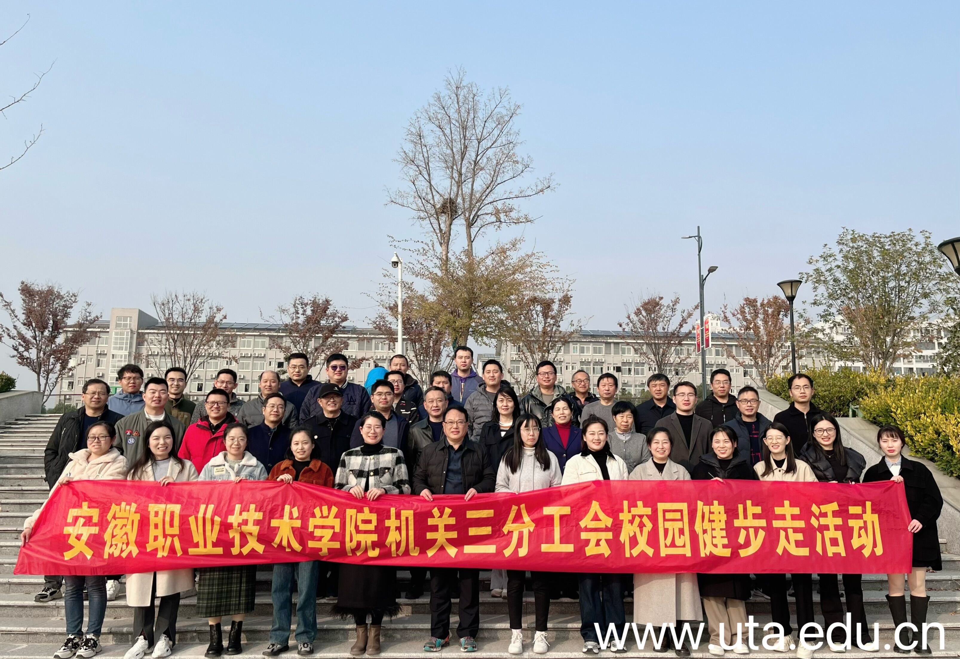 冬日暖阳下,分工会教职工热烈欢快地沿着美丽的清水湖,一边欣赏着湖水涟漪,一边感受行知桥、内方亭等校园美景,以实际行动诠释“在校日行8000步,为国服务50年,健康快乐100岁”的健康理念。