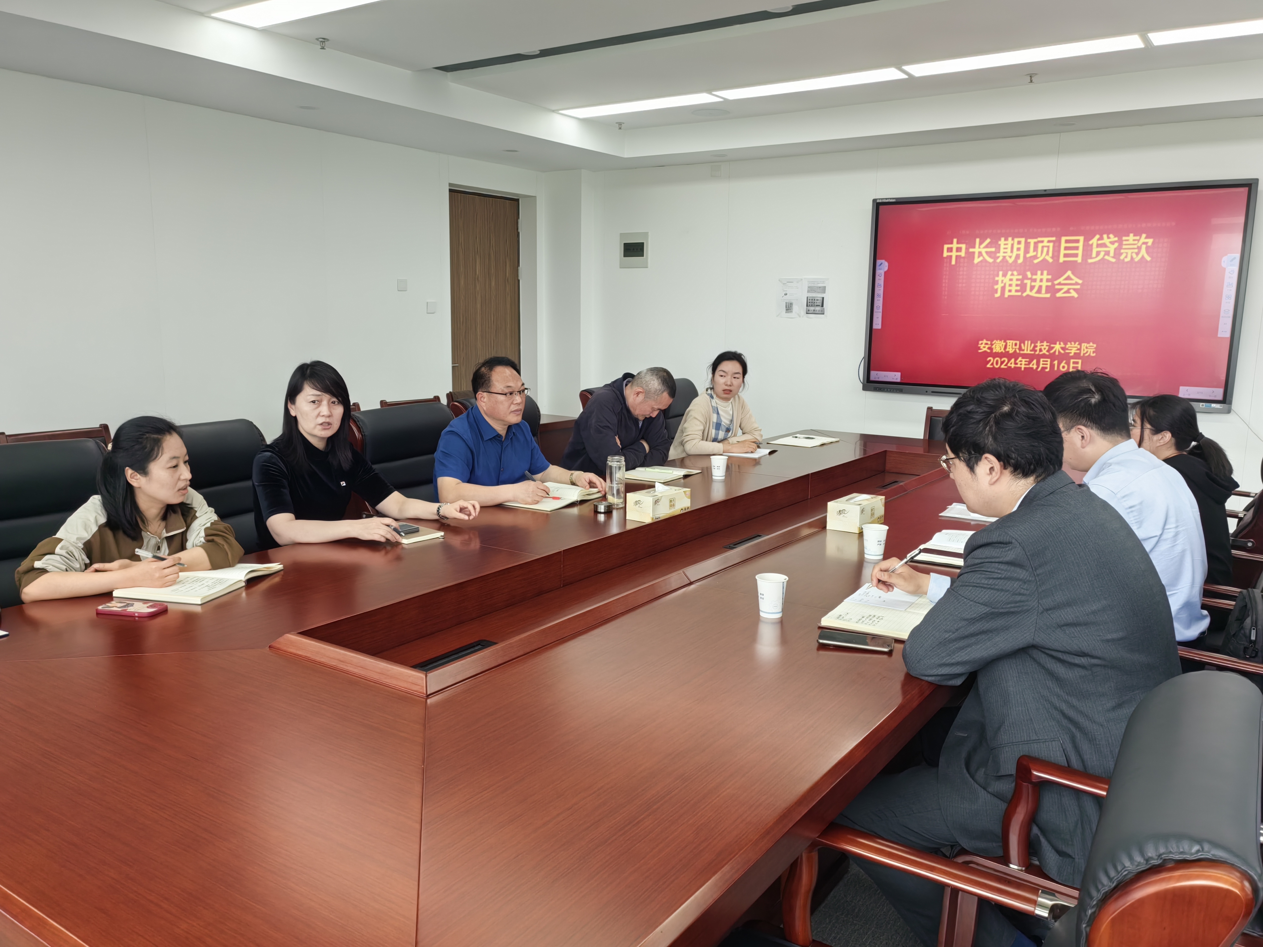唐笑林对农行的大力支持表示感谢,对学院职教本科创建资金需求状况进行了介绍。发展规划处处长洪应、财务处副处长江蓉就项目库建设、项目清单分类、资金提取使用等进行了交流。合肥农行肥东支行副行长崔翔、公司业务部主任徐慧芹就项目资金实施周期、自有资金配套、项目清单梳理、付息还款方式等内容进行了详细的解答。(财务处 汪学龙)