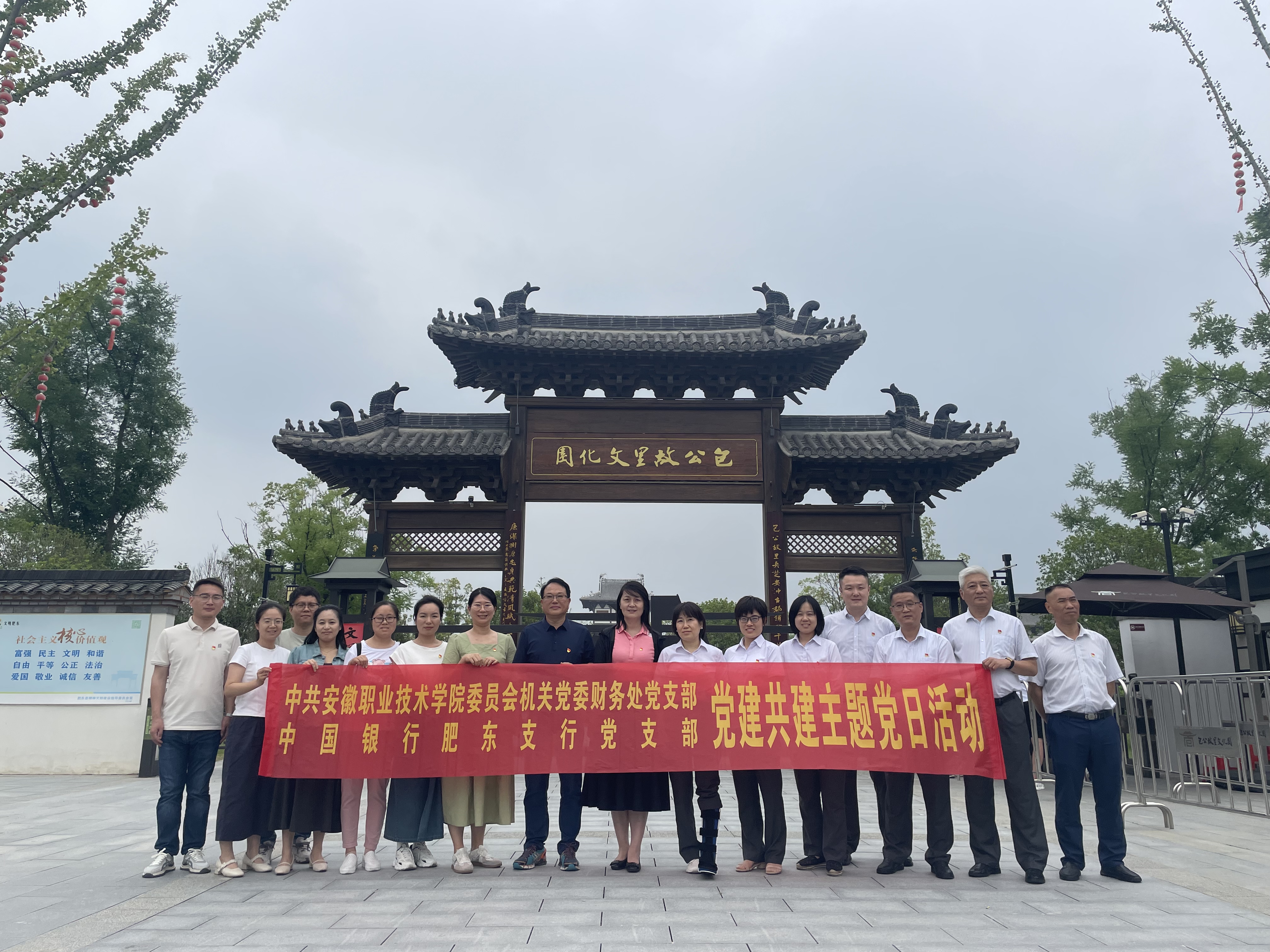 为进一步加深党纪学习教育,弘扬伟大建党精神,在“七一”即将来临之际,6月26日下午,财务处党支部联合中国银行肥东支行党支部前往肥东包公故里文化园开展“迎七一 强党性”党建共建主题党日活动。两支部共15名党员共同参与。