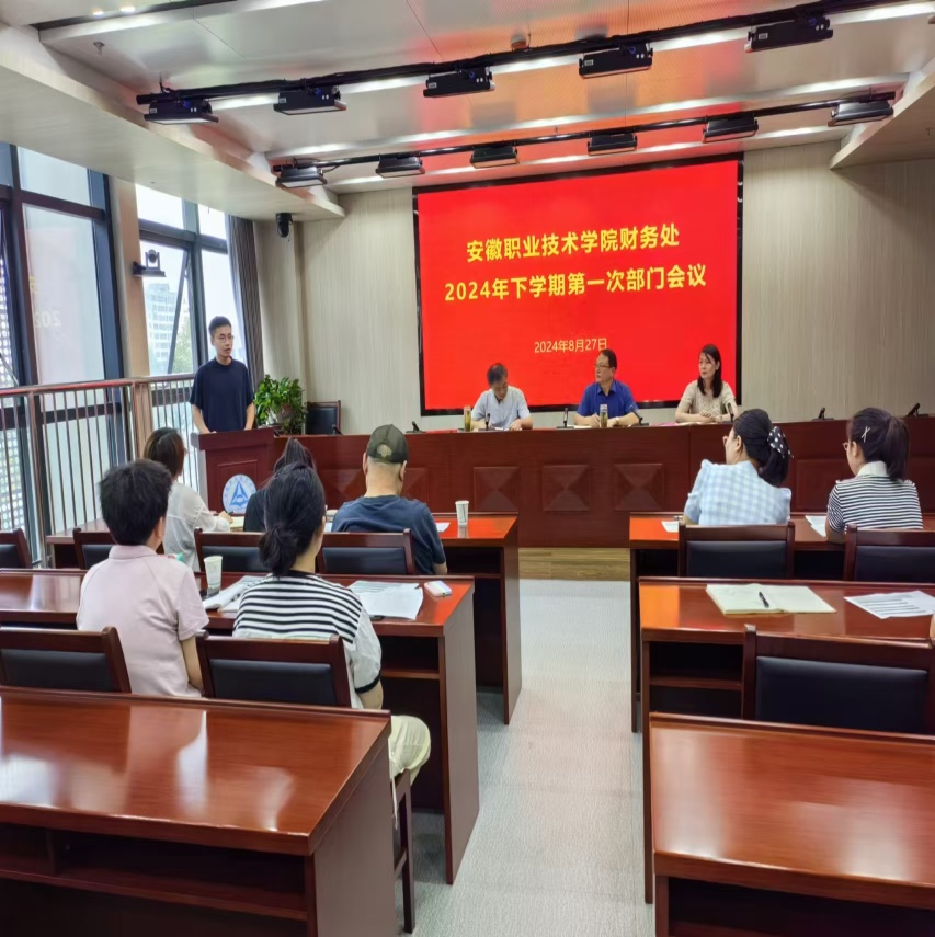 8月27日上午,财务处召开新学期第一次部门工作会议。三校合并重组后的全体财务人员参加会议,会议由财务处处长唐笑林主持。