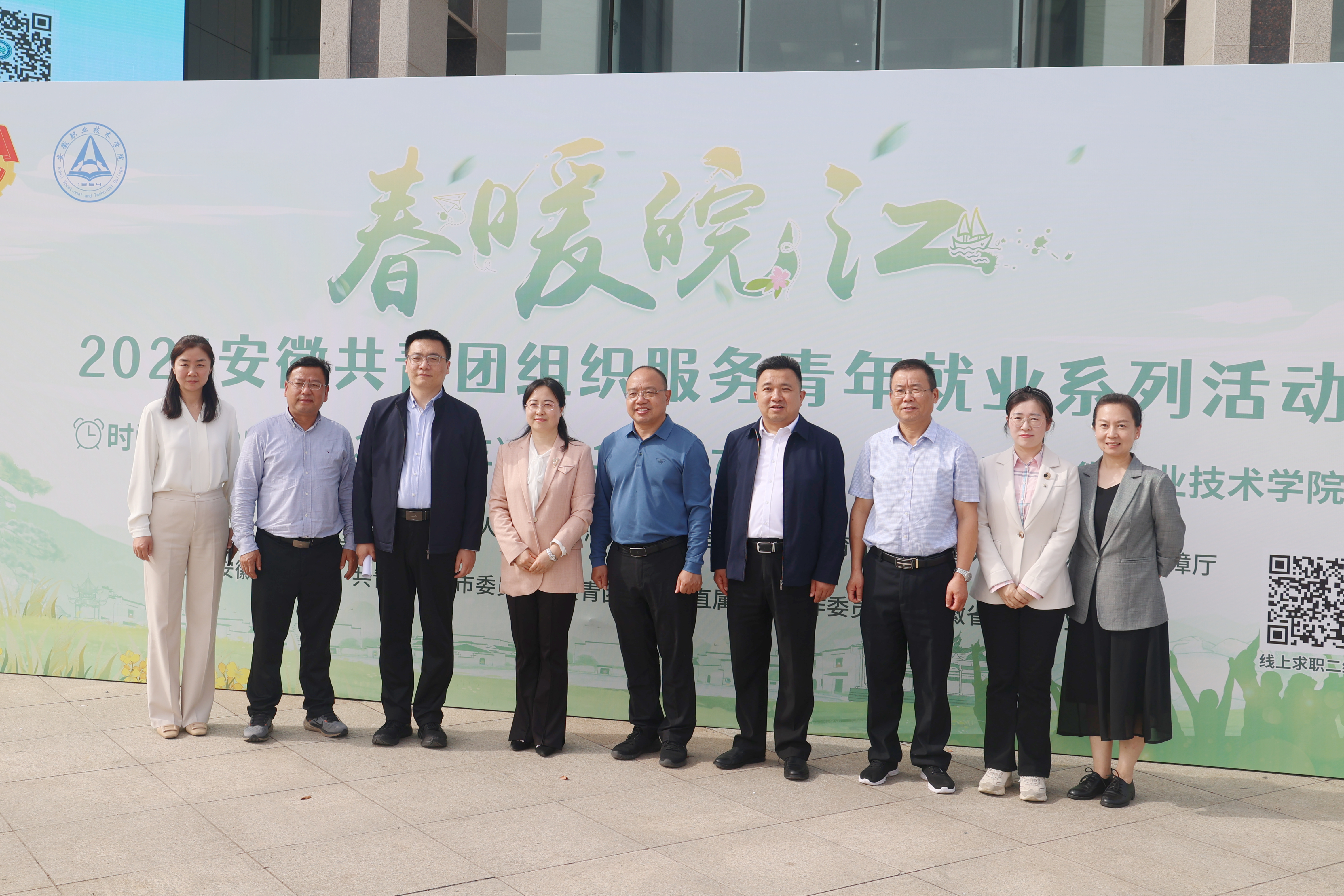4月23日下午,“春暖皖江”2025安徽共青团组织服务青年就业系列活动走进安徽职业技术学院专场招聘会活动成功举办。本次活动由团省委、省台办、省教育厅、省人社厅联合举办,团省委副书记陈娟娟到校指导,青少年发展和权益维护部部长张国栋,省直机关团工委书记盛志伟,安徽职业技术学院党委书记李方泽,党委副书记杨林国,党委委员、副院长宣岩松参加活动。