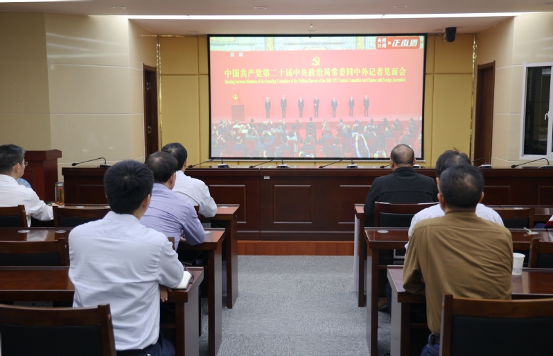 10月23日上午,办公室党支部组织全体党员集中观看了二十届中央政治局常委同中外记者见面会,认真聆听了习近平总书记重要讲话。院党委书记李方泽以普通党员身份收看了本次见面会。