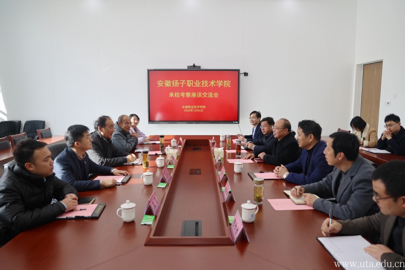 12月6日,安徽扬子职业技术学院院长徐建平一行来院考察并座谈交流,院党委书记李方泽,党委委员、纪委书记李荣富出席会议,相关部门负责人参加会议。会议由李方泽主持。