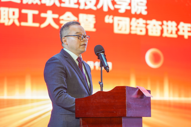 党委副书记、院长盛鹏作了题为《凝心聚力共奋进 砥砺前行创未来》的工作报告,回顾总结了2024年的主要工作,并从十个方面部署了2025年的工作任务。他希望全体教职工凝心聚力、团结奋进、砥砺前行,守初心、担使命,沿着职业教育的光明大道,以永不懈怠的奋进姿态向着“职教本科”的目标阔步前进,共同书写学院发展的新篇章。