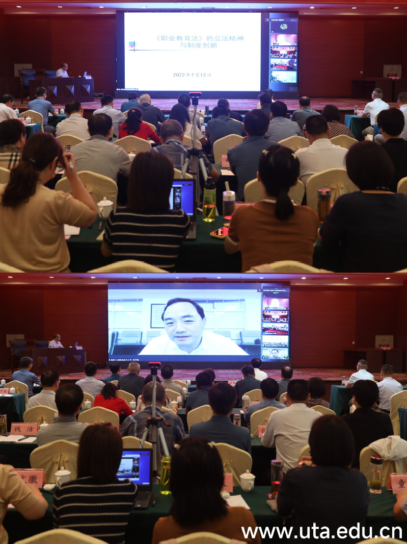 在职业教育专题线上学习环节,学院邀请了国内知名教育专家作《<职业教育法>的立法精神与制度创新》专题报告,邀请南京工业职业技术大学党委书记 、研究员吴学敏作《职业本科学校创新发展之路》主题报告,通过“三方四地”线上教学方式,学院专业带头人和骨干教师在校内分会场同步进行线上学习。两场报告内涵丰富、资料详实、分析透彻、观点鲜明,具有很强的针对性和指导意义。参训学员通过学习,加深了对《职业教育法》系统、全面理解,明确了职教本科发展的机遇和挑战,增强了创建职教本科的决心和信心。