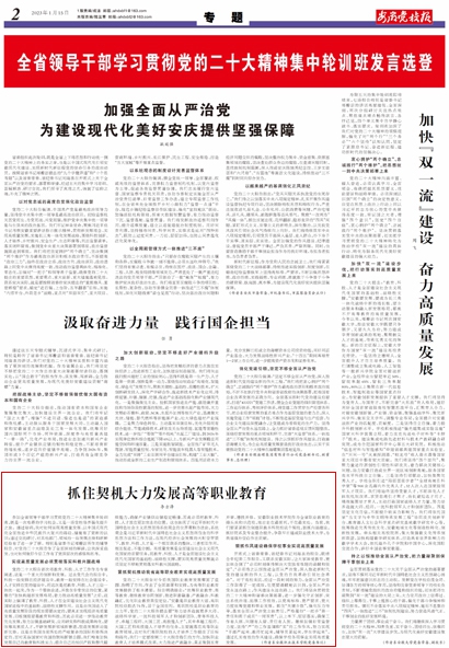 1月15日,《安徽党校报》刊发我院党委书记李方泽署名文章《抓住契机大力发展高等职业教育》。全文如下: