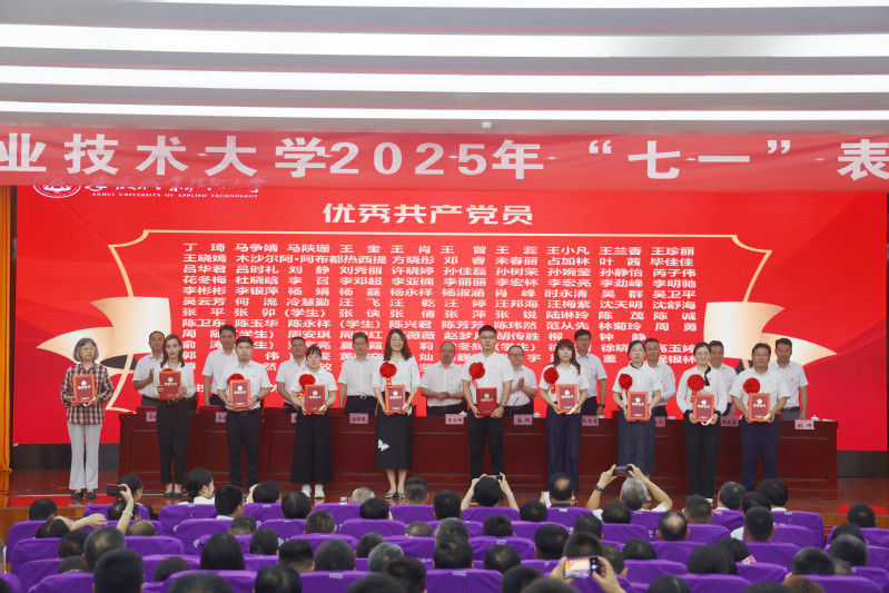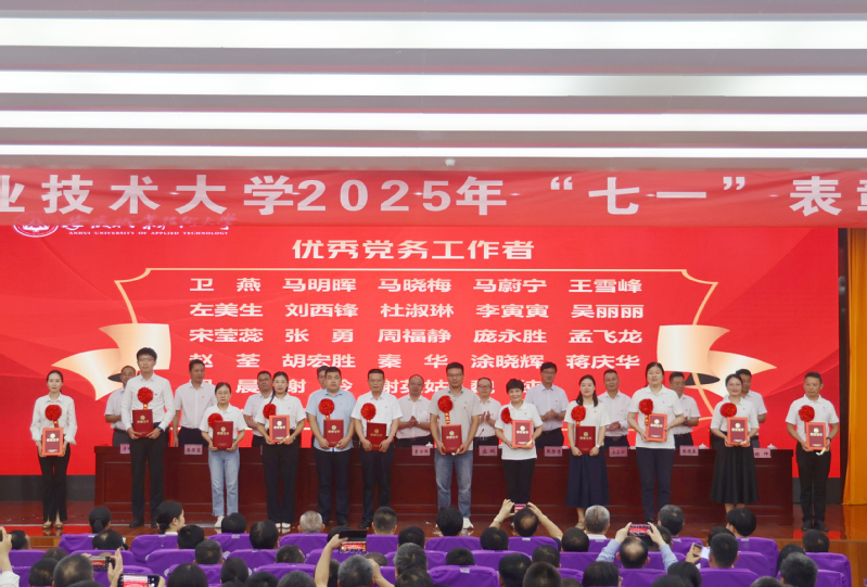 会上,李方泽代表学校党委向荣获“光荣在党50年”纪念章的老党员、向受到表彰的党组织和先进个人表示热烈祝贺,向为全校各项事业付出辛勤努力的广大党员致以节日的问候! 李方泽强调,在过去的一年,学校实现了党建质量、人才培养、教学科研、文化校园等多方面的跃升发展,凝聚着全体安职人的智慧与心血。当前,学校正式升格为76net必赢线路检测中心,标志着学校踏上了新的征程,迎来了新的发展机遇。在建设高水平职业技术大学的关键期,希望学校各级党组织和广大党员干部持续加强党的建设,提升党建质量,为学校事业发展提供坚强保障。要始终把开展深入贯彻中央八项规定精神学习教育作为重大政治任务来抓,纵深推进整改整治,提升学校治理能力和水平;要牢记初心使命,强化责任担当,在推动学校新发展中展现新作为。在新时代职业教育蓬勃发展的浪潮中,我们要持续巩固安职特色作风建设成果,强化师资建设与标志性成果培育,提升科创能力和人才培养质量,努力在各个领域继续取得更加耀眼的成绩;要锚定发展航向,深化内涵建设,加快建设特色鲜明、国际一流的职业技术大学。在加快建设教育强国、科技强国、人才强国的时代趋势下,全校上下要针对本科层次职业教育特点,系统重塑办学治校与教育教学逻辑,锻造职业教育特色,为高等职业教育改革发展闯出一条新路。 盛鹏在主持大会时强调,新征程上,学校广大党员要把坚定理想信念作为终身课题,面对学校职业本科建设提出的“研究实际问题、培养实用人才、服务实体经济”的发展课题,广大党员要牢记升本不忘“本”,升格更有“格”,拿出永葆“闯”的精神、“创”的劲头、“干”的作风,勇担引领职业教育改革发展的光荣使命,提高职业教育服务实体经济发展的贡献力,提升职业教育社会吸引力,为高水平职业技术大学建设持续贡献力量。