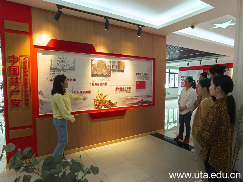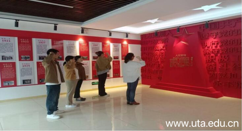 活动伊始,磨店社区导员带领师生团队参观了磨店党群服务中心。在导员的讲述中,通过对中国共产党奋斗历程的回顾,师生对党的历史有了更加深刻的认识。期间,党员同志庄严面向党旗,重温入党誓词。