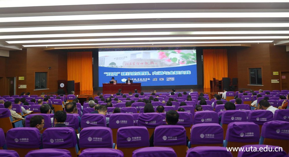 (发展规划处通讯员 王炎)10月16日下午,学院在图文信息中心三楼学术报告厅举行“双高计划”建设专家报告会。本次报告会邀请金华职业技术学院成军教授作《“双高”建设的逻辑、内涵与金职实践》专题报告。院领导班子成员、全体中层干部、全体教研室主任听取了报告。会议由党委副书记、院长盛鹏主持。