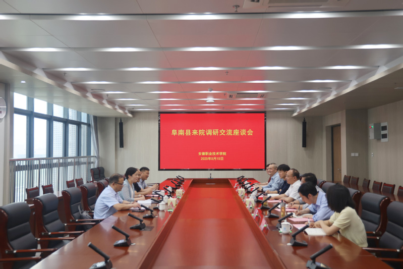 (发展规划处)5月15日,阜南县委副书记梅雪玲,县委教育工委书记、县教育局局长周辉,阜阳理工学校党委书记汪兴国,党委副书记、校长张晖来我院考察调研。学院党委书记李方泽热情接待了梅雪玲一行,相关部门及二级学院负责人参加座谈会。