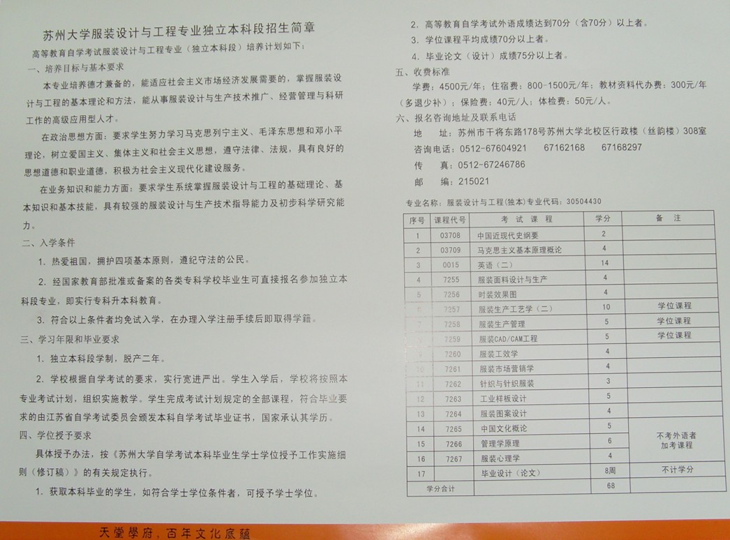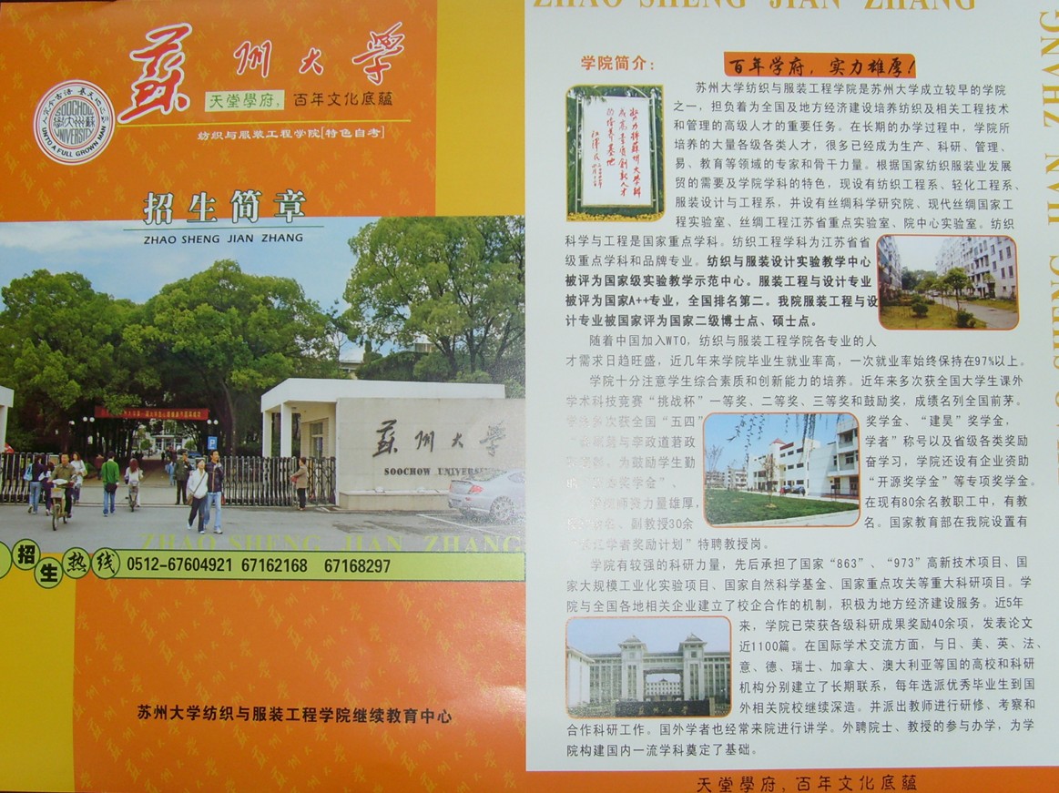 如有服工、服设专业的学生想继续深造,进行本科学习的,可仔细阅读苏州大学简章,有意者可咨询纺织系:夏老师