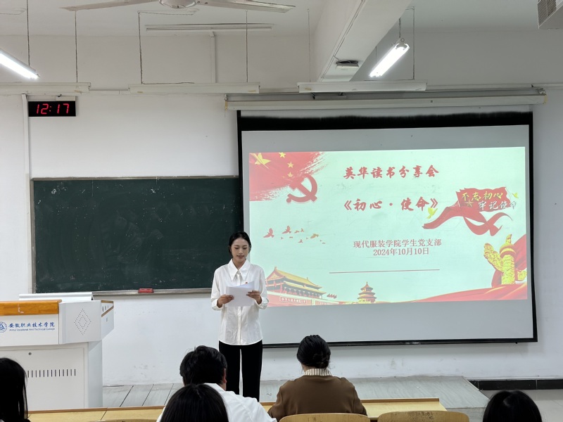 为深刻理解中国共产党的初心和使命,推动理论学习走深走实,10月10日,现代服装学院在明礼楼举办第十四期读书分享会,学院学生党支部党员、全体入党积极分子、2023级各班团支书、思政委员参加活动。