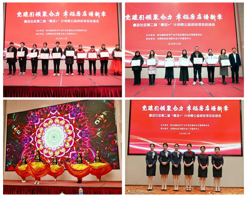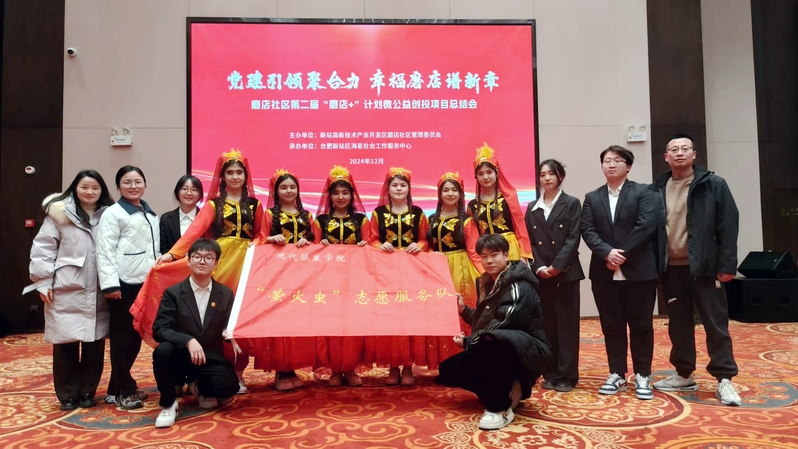为礼赞志愿先锋、情暖社区港湾,12月27日上午,新站区磨店社区管委会与合肥新站区海星社会工作服务中心联合举办磨店社区第二届“磨店+”计划微公益创投项目总结会,现代服装学院萤火虫志愿服务队及指导教师受邀参加活动。