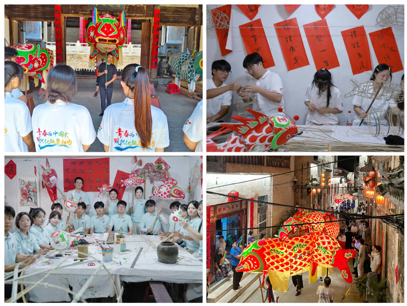 “动”线直抵古村瞻淇。学子们跟随非遗传承人,从山野砍竹起步,全程参与鱼灯骨架扎制、宣纸裱糊到彩绘点睛的诞生历程。汗水浸透衣衫,手上留下竹刺的痕迹,但专注的眼神始终未变——这是青春对传统技艺最质朴的致敬。实践华章在最后一夜奏响:学子们亲手制作的鱼灯被高高擎起,在喧天锣鼓中游弋翻腾于古巷。蜿蜒灯火映照着青春脸庞,古老仪式在年轻生命的舞动中焕发新生,队员们深切感受到非遗穿透时空的磅礴力量。