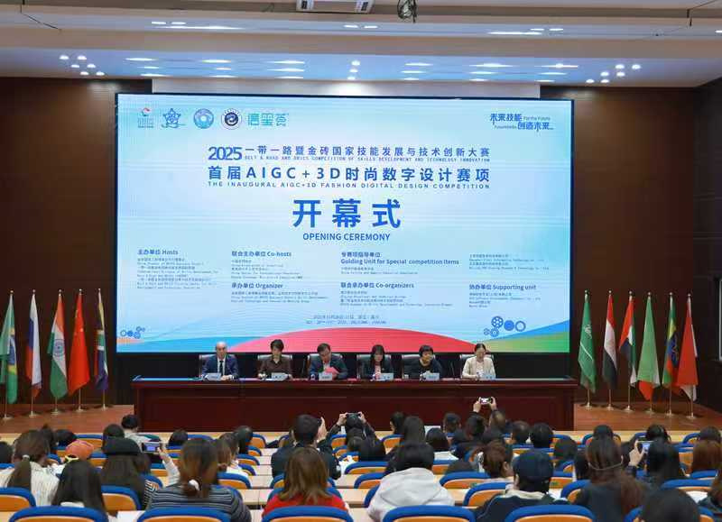 本次大赛由金砖国家工商理事会中方理事会、一带一路暨金砖国家技能发展国际联盟、“一带一路”暨金砖国家技能发展与技术创新培训中心共同主办,中国发明协会、教育部中外人文交流中心联合主办。赛项紧密围绕服装产业的数字化、智能化转型趋势,要求选手综合运用AIGC(人工智能生成内容)工具进行设计灵感激发、面料图案生成与款式开发,并熟练运用3D建模与渲染技术完成虚拟服装的精准呈现。这不仅充分体现了人工智能技术与时尚设计的前沿融合,更是对“数智化”设计新模式的一次成功实践,为行业培养了亟需的复合型技能人才。