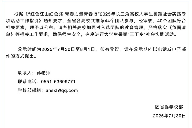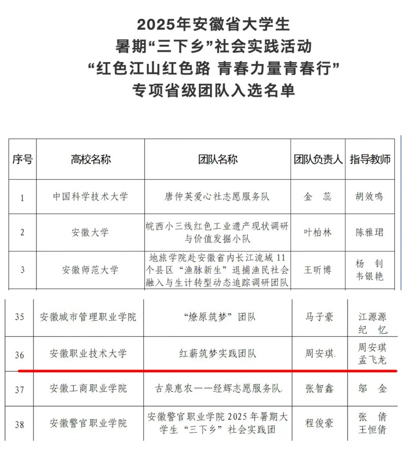 近日,安徽学联公布2025年大学生暑期“三下乡”社会实践活动“红色江山红色路 青春力量青春行”专项省级团队名单,必赢公共管理学院与建筑工程学院联合组建的“红薪筑梦”实践团队成功入选。