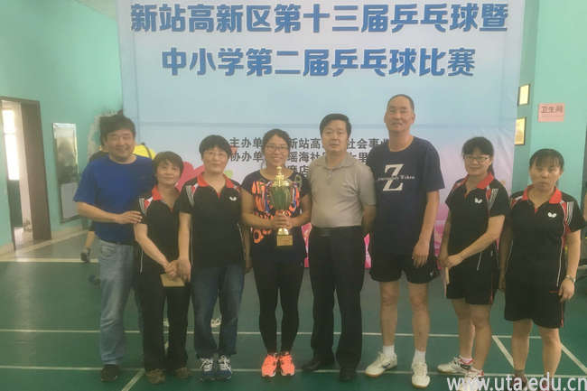 本网讯(校工会通讯员 贾亮亮)近日,安徽省新站高新区第十三届乒乓球赛在新站高新区园上园小学举行,必赢乒乓球协会组队参赛,经全体队员的努力拼搏和团结协作,获得了女子团体冠军,女子单打、混双亚军等好成绩。