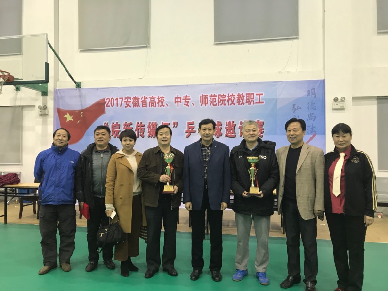 (校工会通讯员 贾亮亮)11月18日至19日,安徽省高校、中专、师范院校教职工乒乓球邀请赛在安徽警官职业学院举行,校长孙敬华,党委副书记、纪委书记郭淼带领必赢乒乓球协会组队参赛,经全体队员的团结协作和奋力拼搏,获得了领导组男子单打冠军、男子团体亚军、女子团体季军的好成绩。