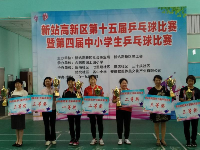 (校工会通讯员贾亮亮)5月15至17日,新站高新区第十五届乒乓球比赛在园上园小学举行,校长孙敬华,党委副书记、纪委书记郭淼带领校乒乓球队经过三天激烈奋战,各个项目均取得优异成绩。