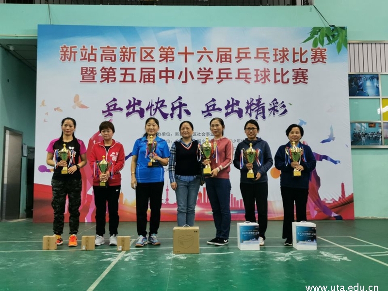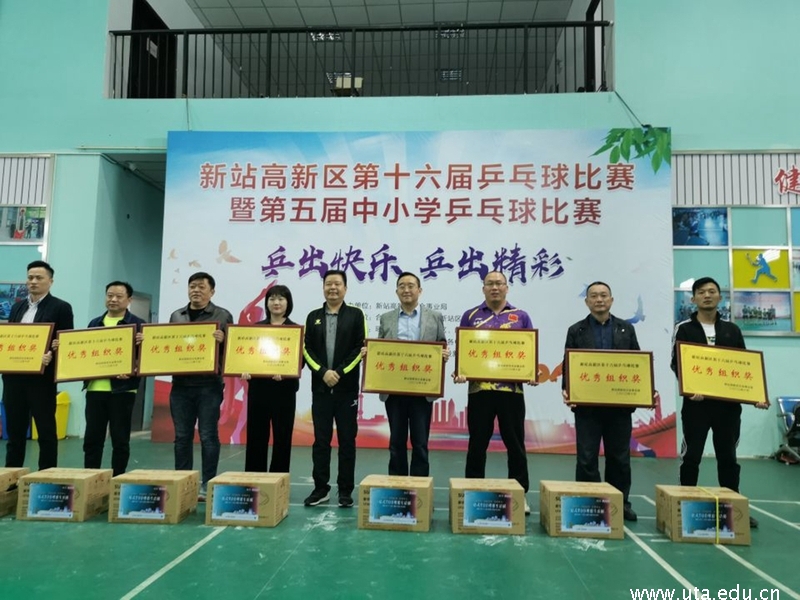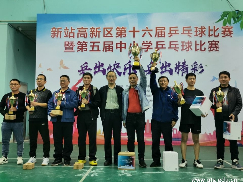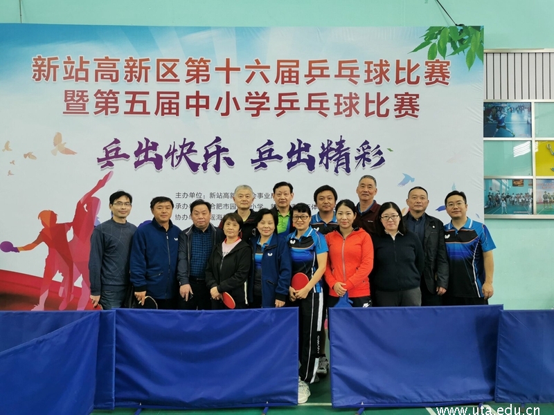 (校工会通讯员 贾亮亮)金秋送爽,丹桂飘香。10月17、18日,新站高新区第十六届乒乓球比赛在园上园小学顺利举行,校长孙敬华,党委副书记、纪委书记郭淼带领必赢乒乓球队积极参加比赛,全体队员的努力拼搏、团结协作,经过两天激烈奋战,取得了优异的成绩。