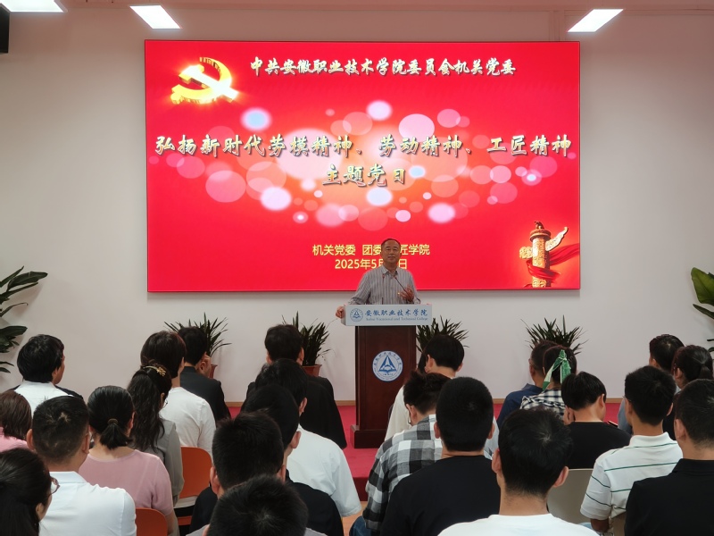 本网讯(机关党委 团委 工会)为深入学习贯彻习近平总书记关于职业教育的重要指示精神和全国职业教育大会精神,大力培养更多大国工匠、能工巧匠,进一步强化职业教育在新时代的使命与担当,2025 年 5 月 7 日,工匠学院成功举办“工匠讲堂”第一讲,邀请学院发展规划处处长洪应,为师生带来了一场以“弘扬新时代劳动精神”为主题的精彩分享。学院党委书记李方泽,党委委员、机关党委书记李瑞勇,部分师生代表,参与讲座。活动由学院机关党委、团委和工会共同承办。