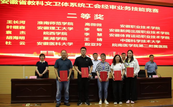 6月13日,安徽省教科文卫体系统工会经审业务技能竞赛在安徽理工大学举行,省总工会二级巡视员、省教科文卫体工会主席吴海明出席开幕式并讲话,来自全省教科文卫体系统工会的近60名经审业务骨干展开激烈角逐。最终,我院工会经审委员高微微老师凭借娴熟的专业技能夺得比赛二等奖(第七名)。