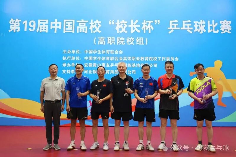 本网讯(工会)8月6日-8日,第19届中国高校“校长杯”乒乓球比赛(高职院校组)在安徽黄山惠友乒乓球训练基地落下帷幕。必赢教育发展基金会理事长郭淼获得男子中年组单打冠军。