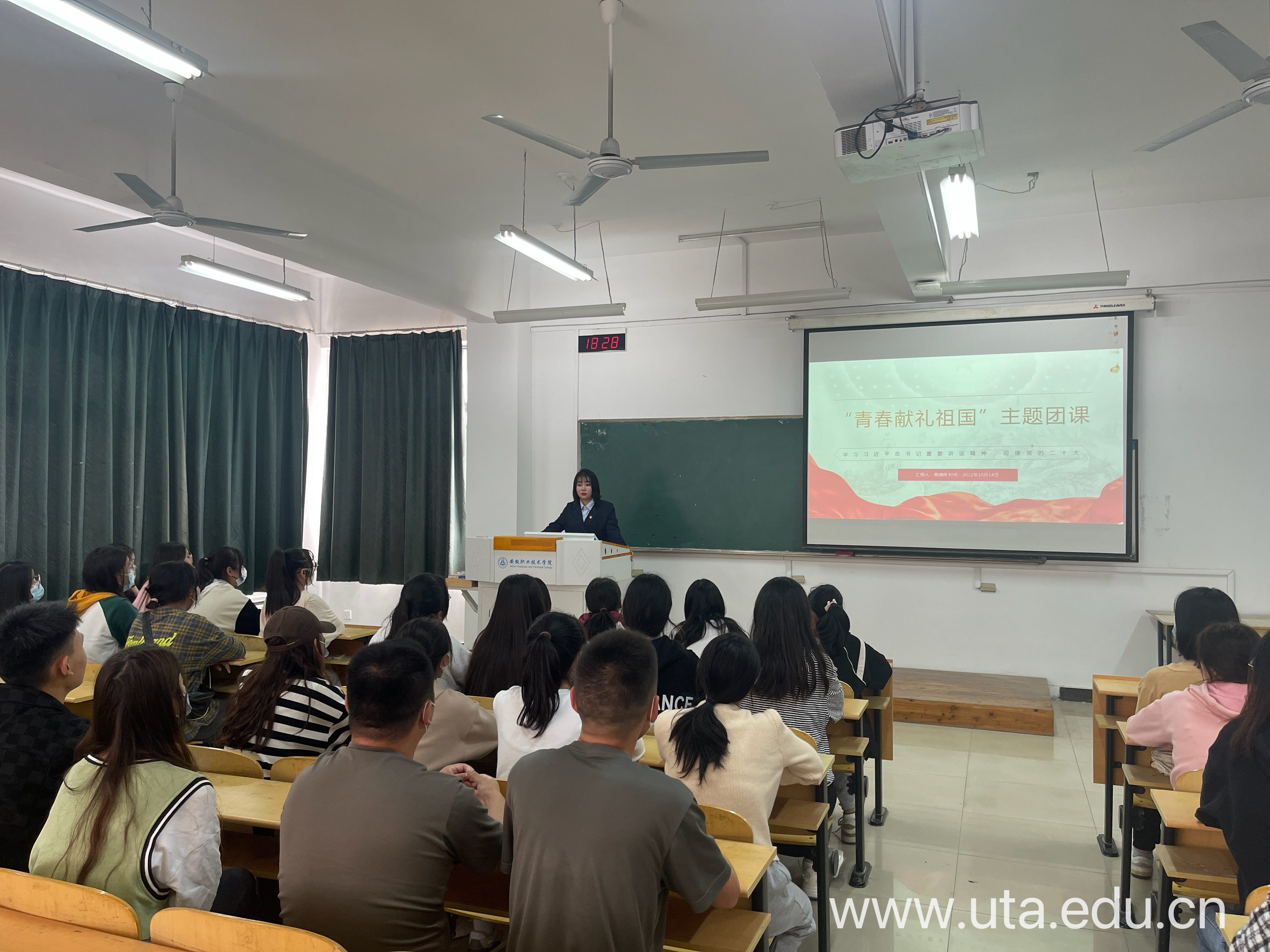 百年程,落青春。为迎接党的二十大胜利召开,引领广大青年坚定跟党走、建功新时代,以青春之名,向祖国献礼!10月14日晚,环境与生命健康学院和智能制造学院团总支在教B503教室,为团学干部共上一堂“青春献礼祖国”主题团课,由环境与生命健康学院团总支书记章婧婷和智能制造学院团总支书左皓主讲,两院全体新生团学干部、班级团支书参加。