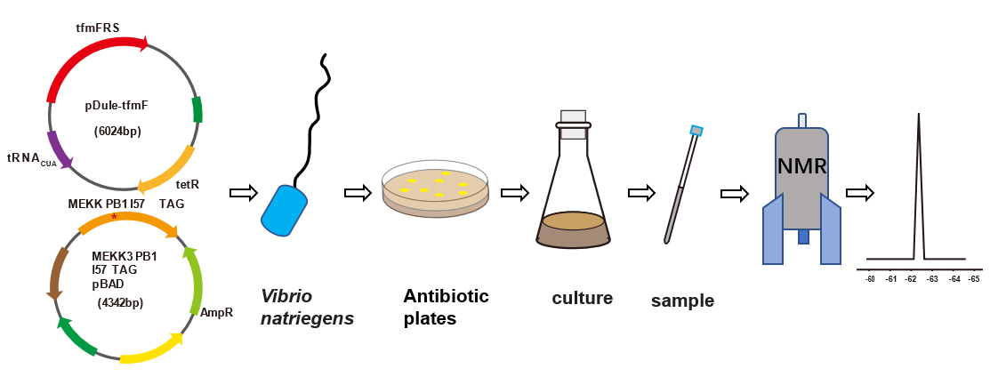 Hao Li#, Zhang J, Wang Z, Shi P, Shi C#. Genetically encoded site-specific 19F unnatural amino acid incorporation in V. natriegens for in-cell NMR analysis. Protein Expr Purif. 2024.05