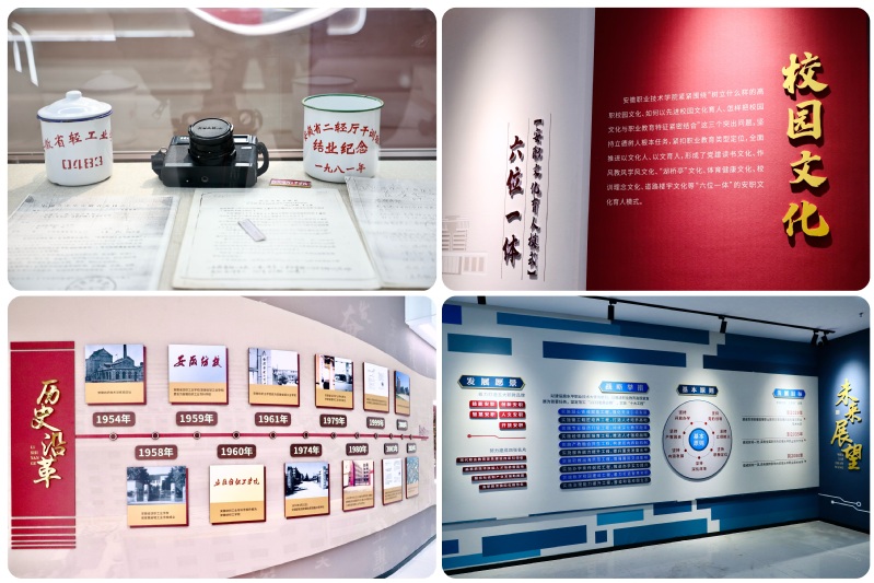岁月无声,历史有痕。踏入校史馆的那一刻,师生的目光瞬间被一幅幅珍贵的历史照片和实物展示所吸引,盒箱柜中每一个展陈都诉说着往昔的峥嵘岁月,聚光灯下每一幅照片都承载着学校的精神密码,历史沿革的每一步节点都记录着知识的传承与创新,它们真实再现了安职从诞生到如今辉煌的每一个重要瞬间。在讲解员的指引下,师生们或驻足凝视,或轻声交流,沉浸在历史的长河中追溯校园发展的脉络,铭记那段属于安职的光辉时光。