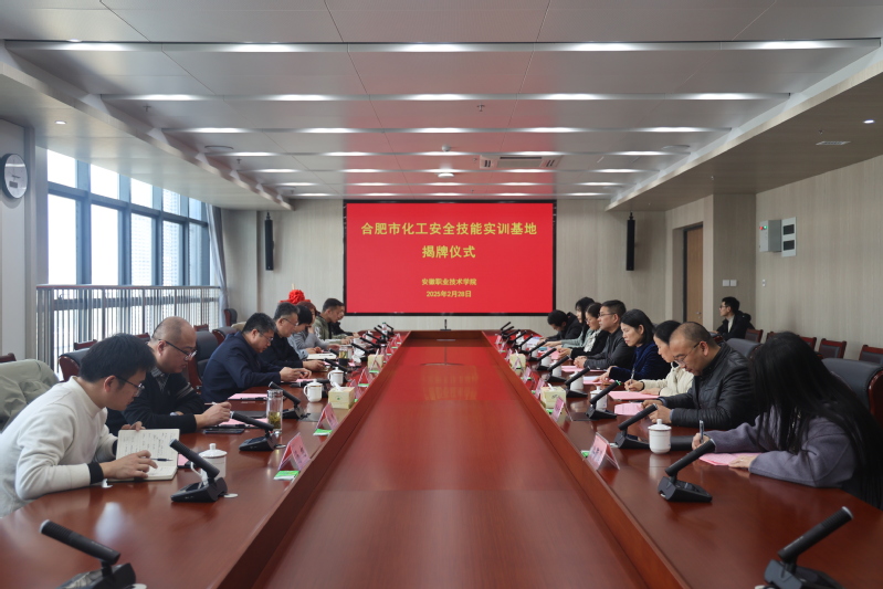 (环境与生命健康学院)2月28日下午,合肥市化工安全技能实训基地揭牌仪式在我院圆满举行。安徽职业技术学院党委委员、副院长胡辉平,合肥市应急管理局党委委员、副局长车学清,合肥市各化工园区相关负责人和学院相关部门主要负责人参加揭牌仪式。仪式由环境与生命健康学院党总支副书记郝建文主持。
