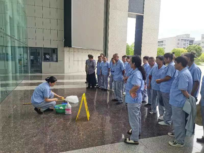 在此次培训活动中,集团内训师凌星星以“微笑服务”为主题,深入剖析了微笑在服务中的重要性,并通过案例和现场情景模拟等方式,使员工们掌握到了如何微笑服务和认识到了其对构建和谐校园作用;保洁主管薛园园凭借丰富的保洁经验,为员工们详细讲解了各类保洁工具的正确使用方法和技巧,包括尘推推尘、玻璃清洁等。培训过程中,通过现场演示和互动教学,员工们直观地掌握了这些技能,提升工作效率和安全性。