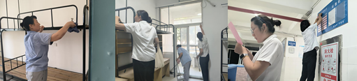 (一)新生宿舍筹备上,提前启动1314间新生宿舍深度清洁与设施检修工作。逐间清理卫生死角,对床铺、衣柜、桌椅等家具进行加固与消毒;全面排查水电线路、门窗锁具、卫浴设备,更换老化零部件217处,确保每间宿舍设施完好、环境整洁,从源头消除安全隐患。