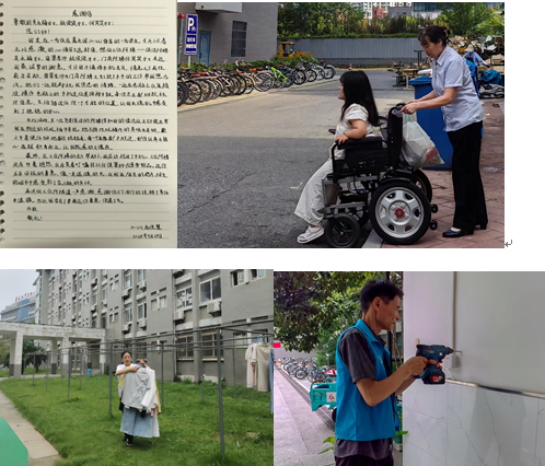 (二)针对住在韶华园和锦绣园两位残疾学生生活不便的困难,公寓管理团队联动多部门推进系列改造与服务,调整公寓门口台阶坡度,降低淋浴头支架高度,安装遮光窗帘,从通行、洗漱、居住等核心场景优化体验;新增无障碍车充电插座,解决学生出行工具续航难题;门岗值班员主动承担帮扶职责,每日协助学生推轮椅进出公寓大门,确保学生出行安全。