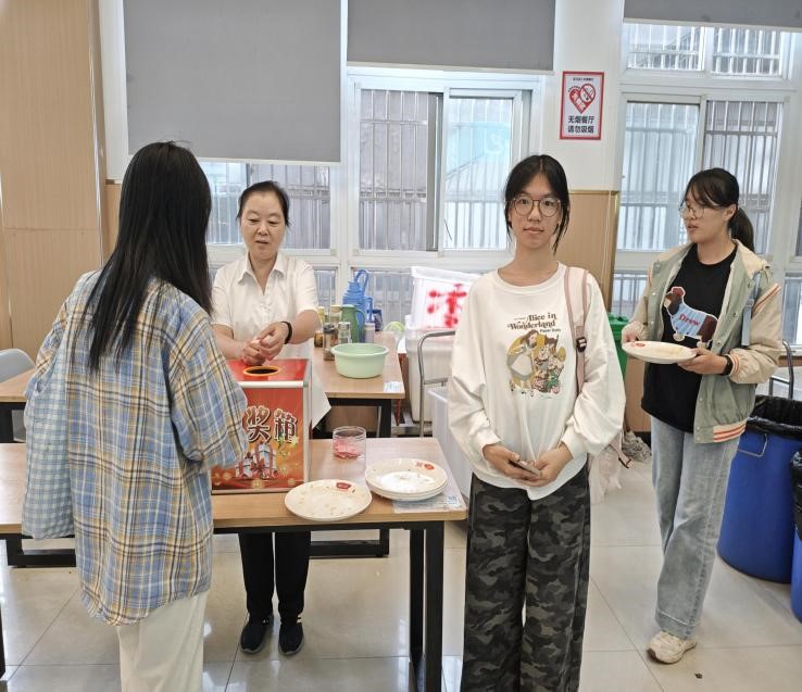 活动现场,同学们手持空餐盘有序参与抽奖,某个同学说:“抽到玩偶很开心,以后会更注意按需取餐,不浪费粮食”。当日参与人次超 800人,餐厅厨余垃圾减少近三成。