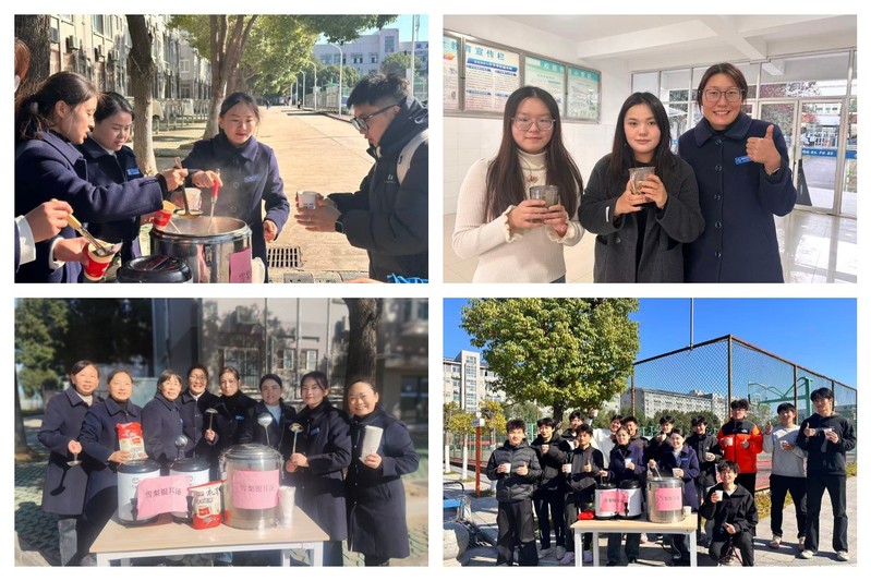 近日突然降温,天气干燥,初冬的寒意悄然浸润校园。为呵护学子健康,传递公寓温情,11 月18日,新亚物业在学生公寓开展暖心梨汤派送活动,为同学们送上亲手熬制的雪梨银耳汤,用温暖守护这个冬天。